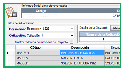 Genera cotizaciones a partir de los proyectos y sus requisiciones.
