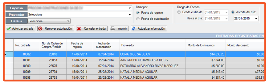 Por cada empresa que tengas registrada tendrás un almacén central, donde se registrarán todas las órdenes de compra surtidas por los proveedores de este modo es posible tener el costo exacto de los inventarios y costo real del proyecto.