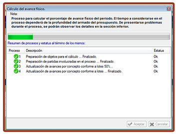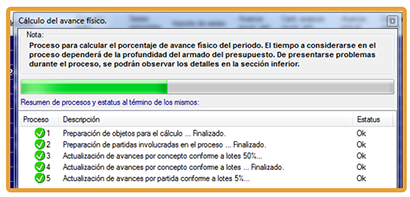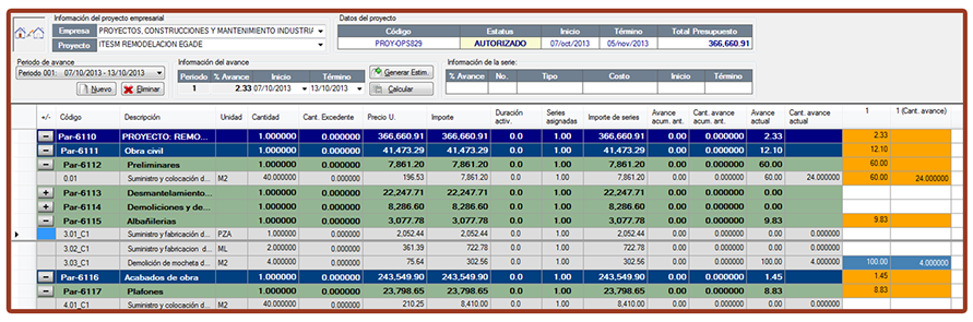 Genera nuevos periodos de avance físico indicando el porcentaje o cantidad de avance por cada actividad del presupuesto, permite además generar estimaciones para clientes con finalidades de cobro.