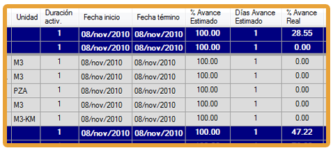 Parte fundamental del control de obra lo representa el registro de los porcentajes de avance del proyecto que se está ejecutando.