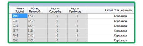 Consulta de insumos ingresados a almacén por requisición a detalle con descripción y solicitante.